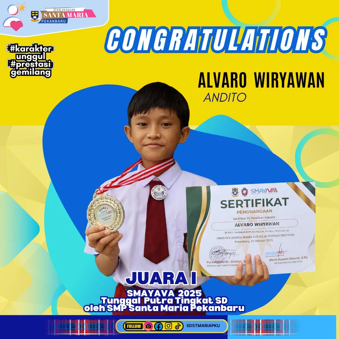 ![]() | Alvaro Wiryawan Andito | JUARA I lomba SMAYAVA | SMP Santa Maria | Provinsi | 2025/11 |