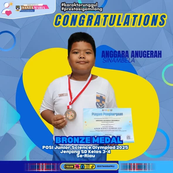 ![]() | Anggara Anugerah Sinambela | Bronze Medal Jenjang SD Kelas 3–4 | POSI Junior Science Olympiad | Provinsi | 2026/1 |