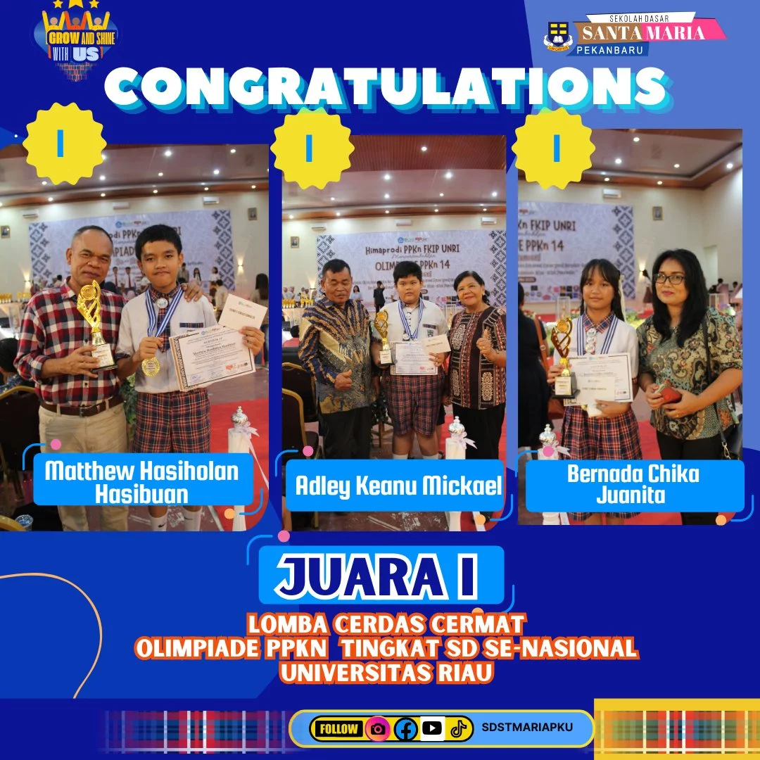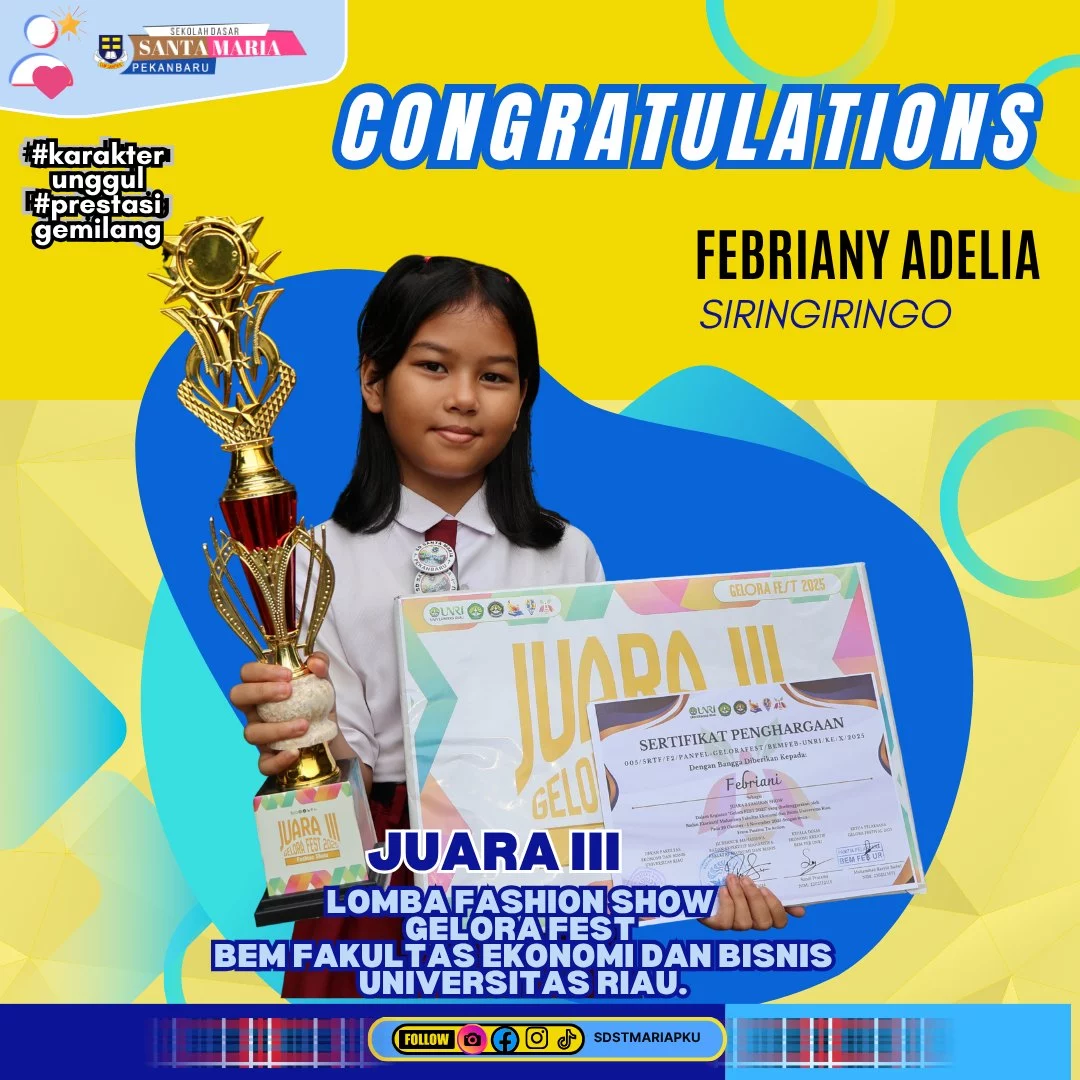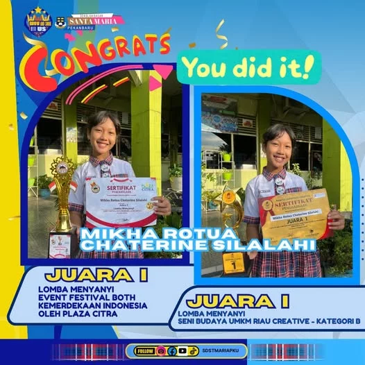 Rekapitulasi Prestasi Peserta Didik Tingkat Nasional, Provinsi dan Kota SD Santa Maria Pekanbaru