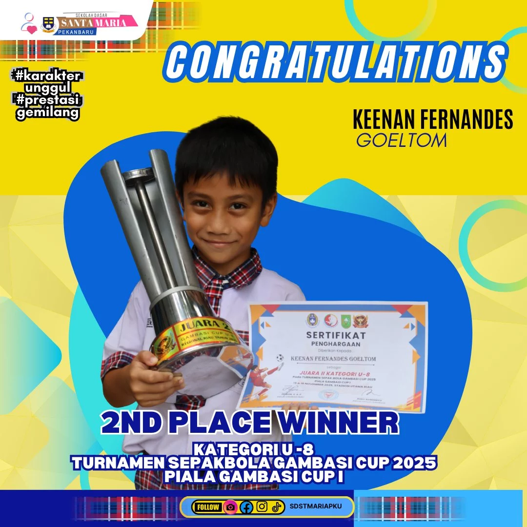 ![]() | Keenan Fernandes Goeltom | 2nd Place Winner Kategori U-8 Turnamen Sepakbola Gambasi Cup 2025 4th Place UB (K 2017–2018) Pekanbaru Grassroots Championship Series II 2025 | Gambasi dan Grassroots | Kota | 2025/11 |