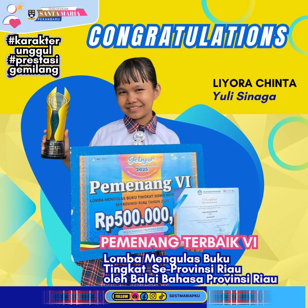 | Nathasia Emilia Putri | Juara 1 Lomba Baca Puisi Tingkat SD SMAYAVA | SMP Santa Maria Pekanbaru | Kota | 2020 | |