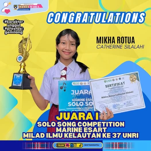 ![]() | Mikha Rotua Chaterine | JUARA I Solo Song Competition | Fakultas Ekonomi Universitas Riau | Provinsi | 2024/11 |