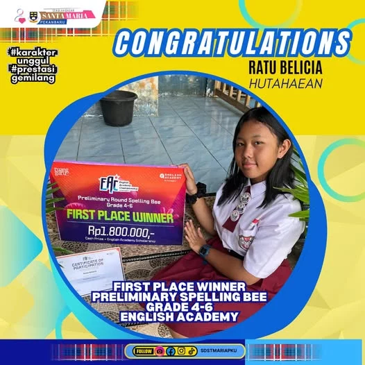 ![]() | Ratu Belicia Hutahaean | FIRST PLACE WINNER — Preliminary Round Spelling Bee (Grade 4–6) | English Academy | Provinsi | 2025/11 |